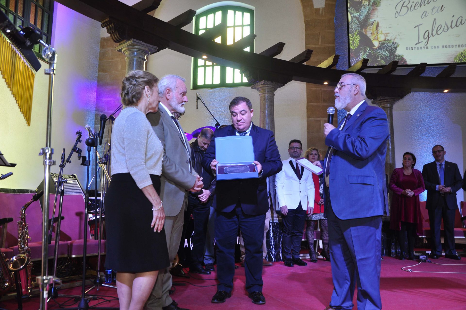 En este acto el pastor y fundador D. Manuel Espejo Sánchez recibió un merecido homenaje junto con su esposa Doña Concepción Muñoz por el reconocimiento y servicio prestado durante estos 40 años en un sentido y emocionado tiempo, donde el cuerpo ministerial nacional arropó con su presencia en el estrado a nuestros fundadores, junto con su hijo Jonatan Espejo y esposa Natalia Tarquis y nietas.